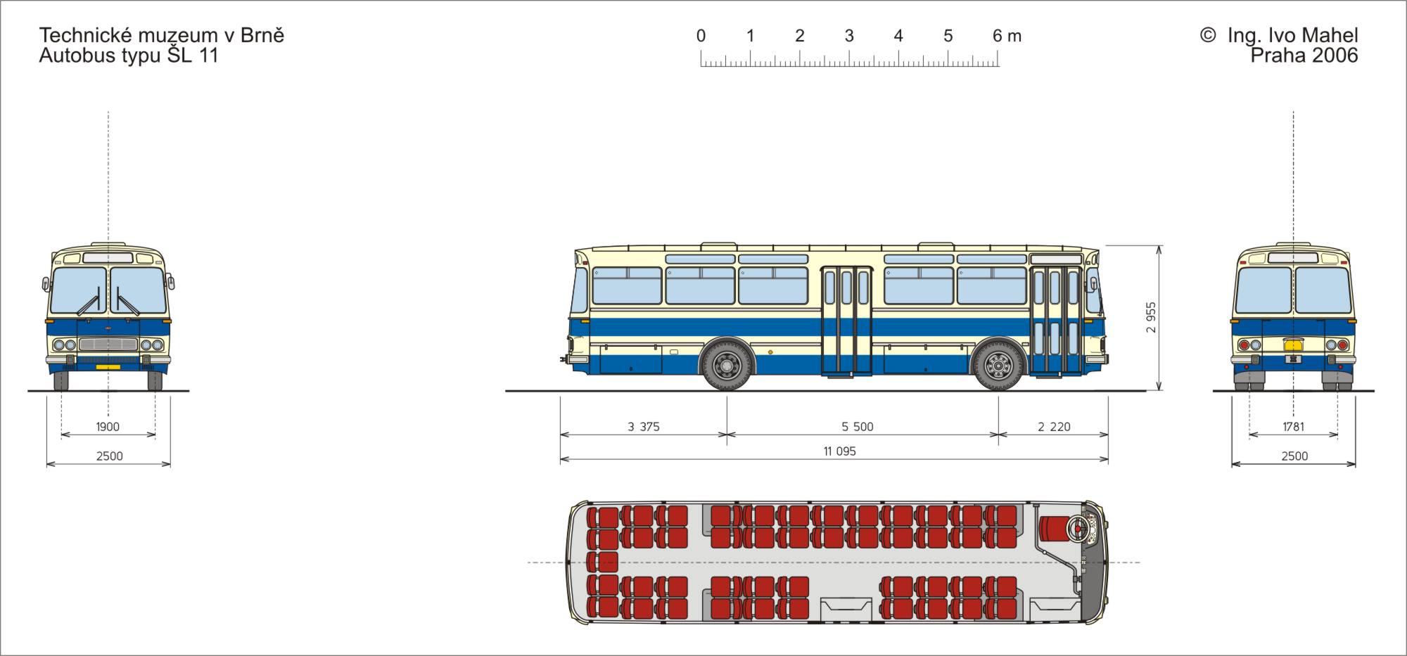 Autobusy řady Š 11 byly konstrukčně odvozeny z městského autobusu ŠM11, od něhož se lišily především uspořádáním vstupních dveří a interiéru. V pravé bočnici měly jen dvoje trojkřídlé dveře, sedadla byla uspořádaná příčně 2 + 2, měla kostru z ocelových trubek, polstrovaný sedák a opěrku. Odpružení vozu bylo řešeno šesti nízkotlakými vzduchovými vlnovci. Přední dělená náprava měla kola nezávisle zavěšená na polonápravách rovnoběžníkové konstrukce s nestejnou délkou ramen, zadní hnací náprava RÁBA byla tuhá sestávající z rozvodovky a dvou polonáprav. Řízení s dělenou spojovací tyčí mělo hydraulický posilovač. Vodou chlazený naftový motor ML 634 byl vznětový čtyřdobý ležatý šestiválec o zdvihovém objemu 11949 cm3. Vrtání válců bylo 130 mm, zdvih 150 mm. Linková verze autobusů ŠL11 měla mechanickou pětistupňovou převodovku Praga 5P80. Poslední autobusy tohoto provedení byly z linkové dopravy vyřazeny v polovině 90.let dvacátého století. Vůz ve sbírce Technického muzea umožní srovnání technického provedení městských a linkových autobusů, stejně jako nejstaršího a nejnovějšího provedení téže typové řady.