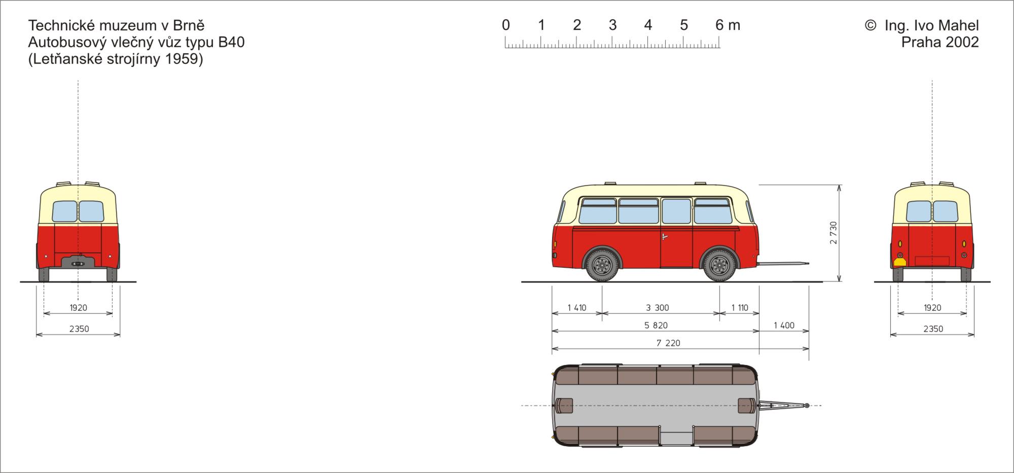 Autobusové vlečné vozy typu B40 vyráběla Karosa Vysoké Mýto v letech 1953 až 1957. Zřejmě v souvislosti se zahájením sériové výroby autobusů Škoda 706 RTO byla jejich výroba předána do Letňanských strojíren Letňany (dnešní AVIA), kde pokračovala do roku 1962. Konstrukce karoserie vleku B40 vychází z horských autobusů Tatra 500 HB. Je celokovová samonosná z ocelových lisovaných profilů, vzájemně elektricky svařených. Podlaha je ze smrkových palubek tloušťky 22 mm, původně kryta dřevěným roštěm, u novějších vozů gumovým kobercem. Vnitřní obložení stěn je z dřevovláknitých desek, v horní části natřených krémovou barvou, pod okny „trhacím“ lakem. Okna jsou zasklena pomocí speciálního gumového profilu, jejich horní část je vyklápěcí. Větrání dále zajišťují čtyři stropní klapky. Sedadla jsou podélná, polstrovaná, potažená hnědou koženkou. Na obou čelech vozu bylo umístěno jedno příčné sedadlo. Nad sedadly jsou laťkové police na zavazadla. Pojezd vozu je dvounápravový, nápravy tvoří ocelová roura s kuželíkovými ložisky. Jednookruhová vzduchotlaková brzda působí na všechna čtyři kola, ruční páková brzda jen na zadní kola. Pérování zajišťují podélná listová půleliptická péra. Řízení vozu je provedeno tažnou ojí přes předlohu, teleskopický tlumič a spojovací tyče na řídící páky předních kol.