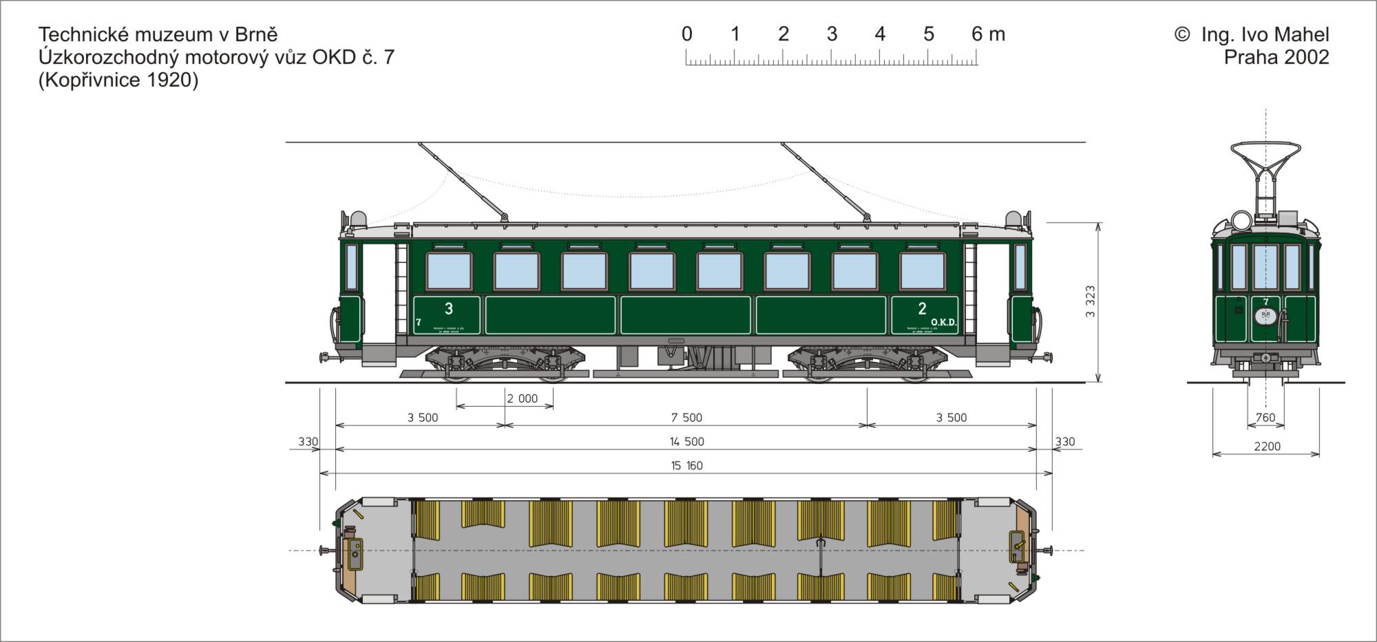 První úzkorozchodnou elektrifikovanou tramvajovou tratí na ostravsku se stala Místní dráha Ostrava – Karviná. Její trasa o délce 19,7 km vedla z tehdejší Moravské Ostravy přes Hranečník, Radvanice, Petřvald, Orlovou a Lazy do Karviné, přičemž osobní doprava zde byla zahájena 6. dubna 1909. Kmenovou trať doplňovaly odbočky k Říšskému mostu a nákladní stanici Moravská Ostrava. V Kopřivnické vagónce bylo zakoupeno šest motorových a devět vlečných vozů. Sedmý motorový vůz nejprve vznikl přestavbou jednoho vozu vlečného, jež byl roku 1920 nahrazen novým motorovým vozem konstrukčně shodným s předchozími.
