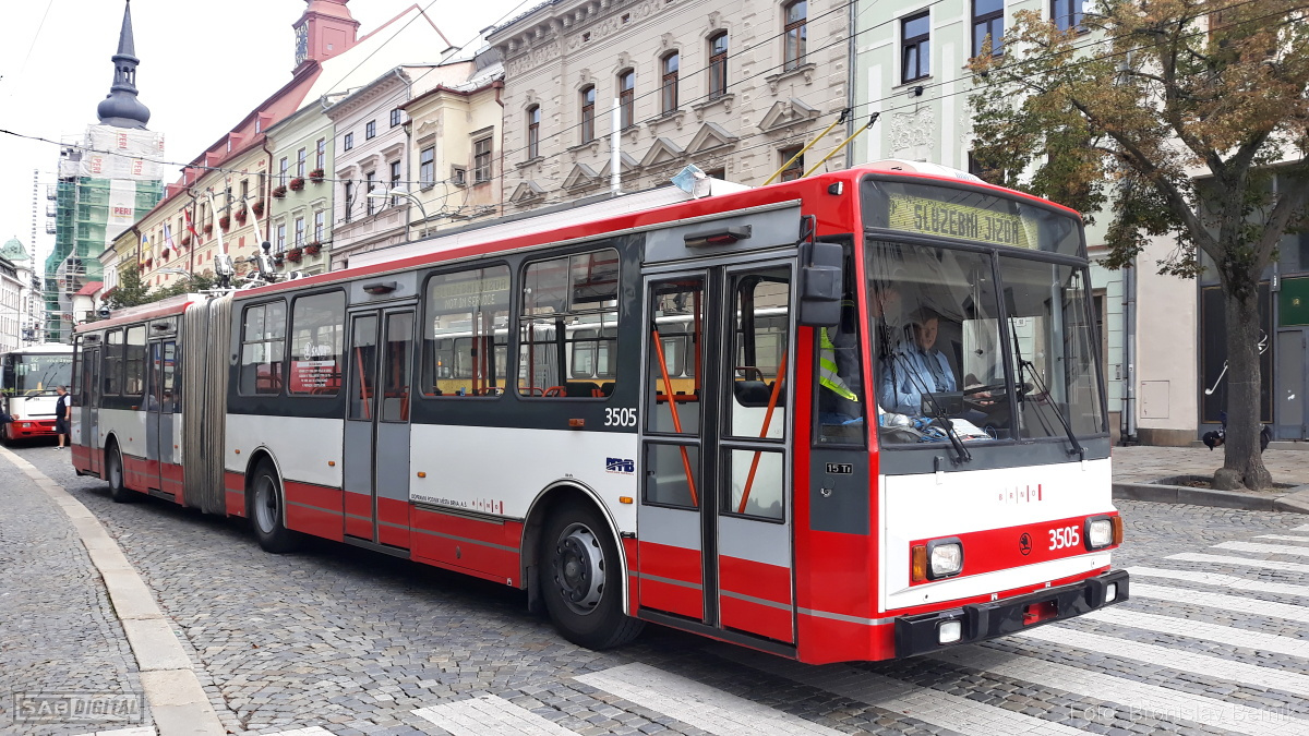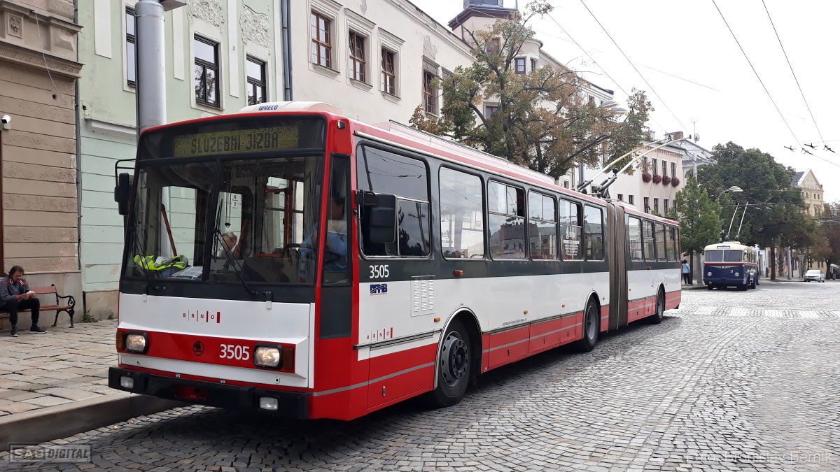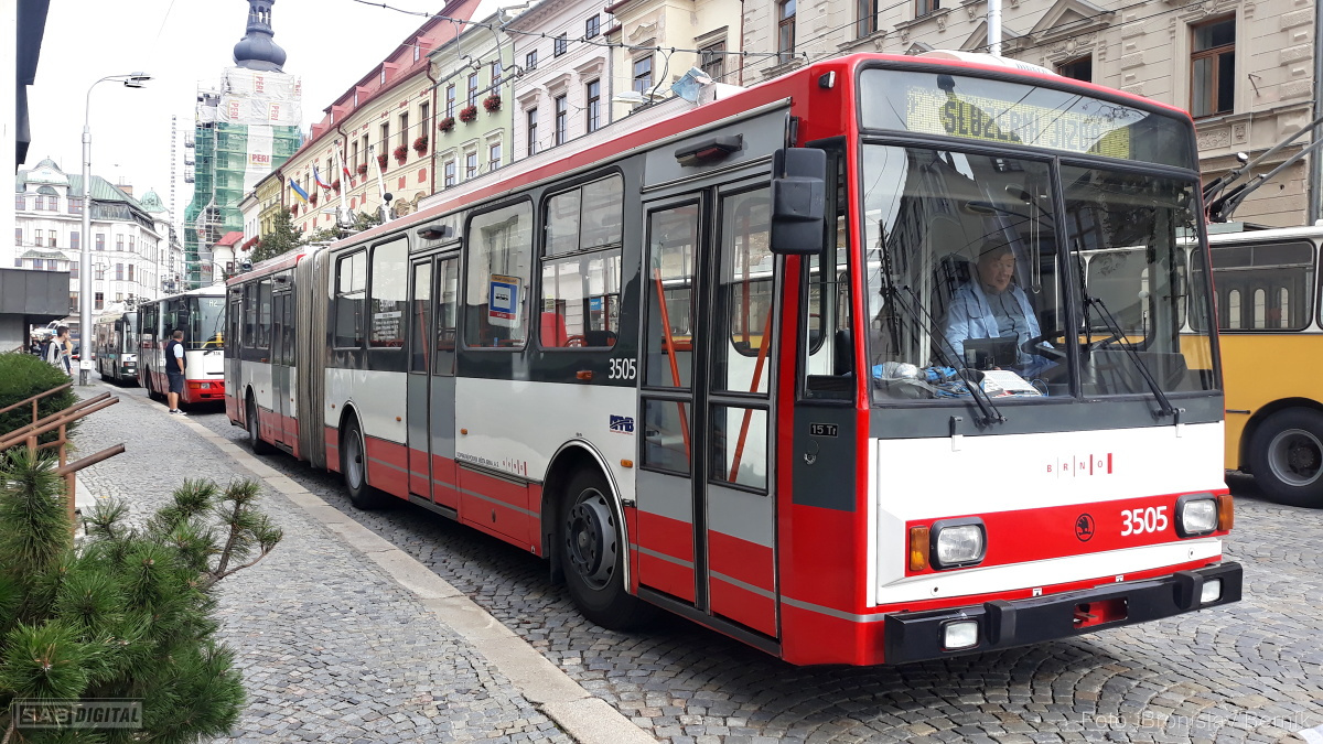 Dopravní podnik města Jihlavy (DPMJ) o víkendu  23.-24. 9. oslavil 75 let provozu trolejbusů a 80 let autobusů v hromadné dopravě v Jihlavě. V sobotu a neděli nasadil historické vozy na retrolinky, včetně trolejbusu 15Tr evidenčního čísla 3505, který byl do Jihlavy dovezen z Brna. I když v Brně tento vůz již ukončil provoz před prázdninami, poslední jízdy pro veřejnost tak odjezdil paradoxně v Jihlavě.